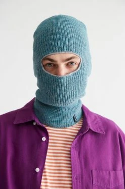 Marl knit balaclava by Autumn. Features a face hole opening and woven logo label.
