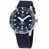 Black dial enhanced by luminous silver-tone hands. Silver-tone stainless steel case with a black leather band. Quartz movement