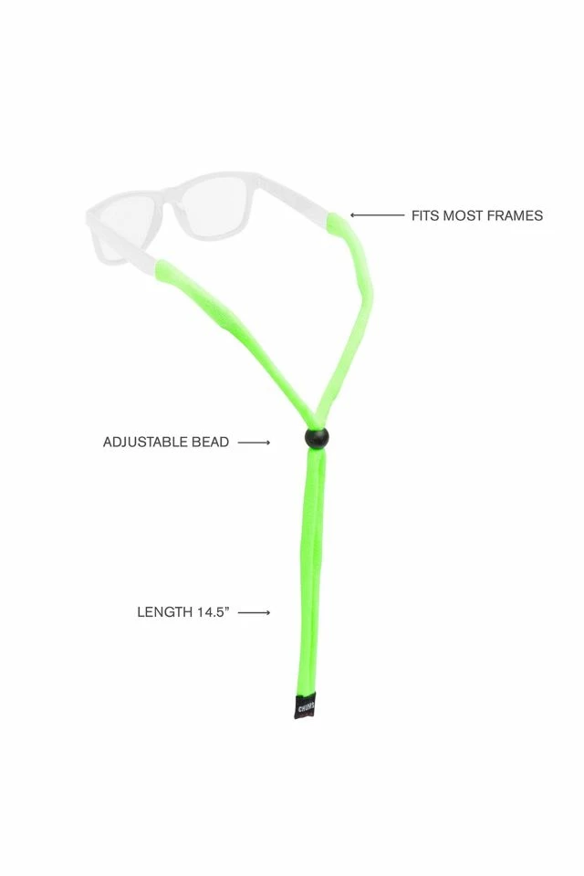 The easily adjustable Chums Original retainer is the product that put us on the map. Millions agree: it is ideal for all forms of action, be it on water, land, snow, or in the air. The original cotton eyeglass retainer has it all: quality, comfort, and the ability to fit most standard frames.