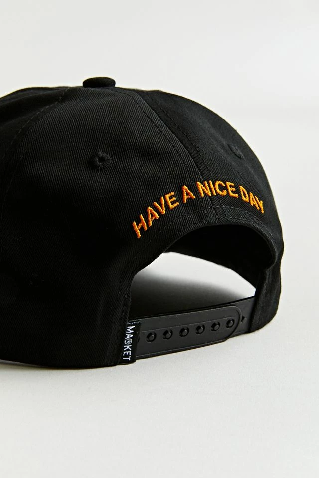 Paneled hat by Market with logo text at the front & slogan text at the back. Adjustable size with a snap closure. Urban Outfitters exclusive.
