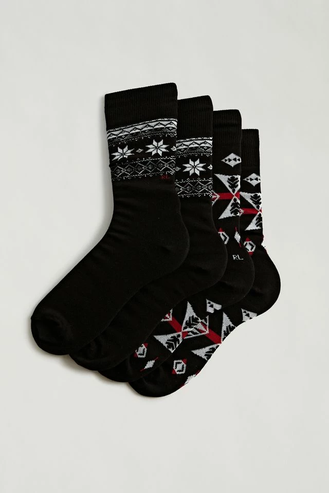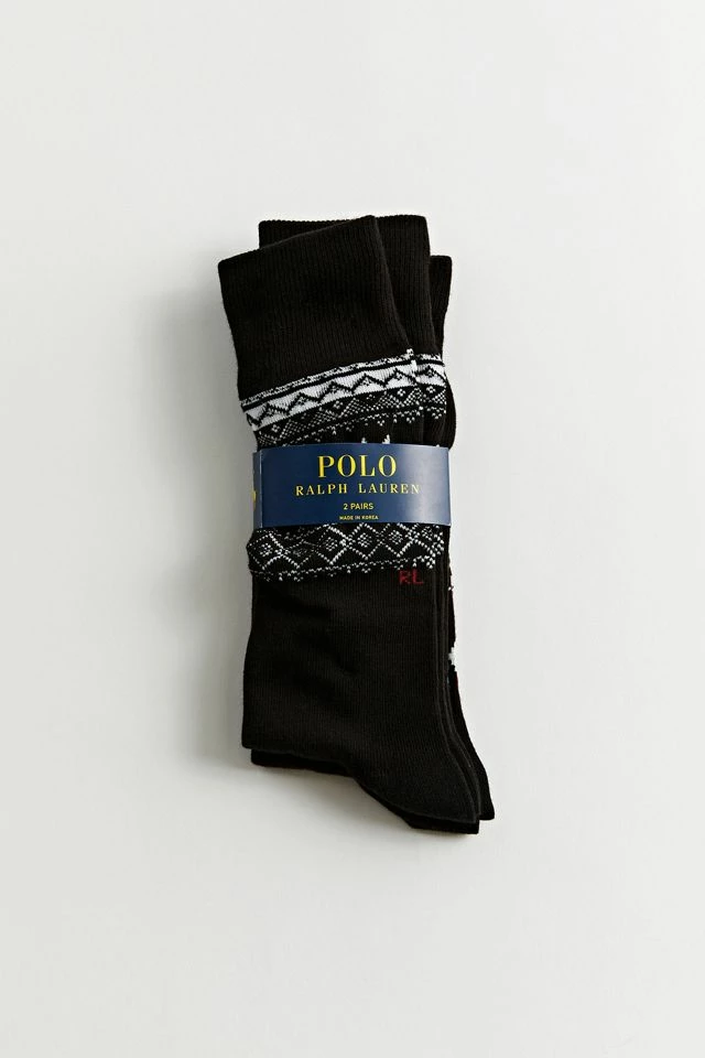 Patterned fine knit socks by Polo Ralph Lauren. Fitted with ribbing trim at the ankle cuff and topped with classic logo embroidery at the side.