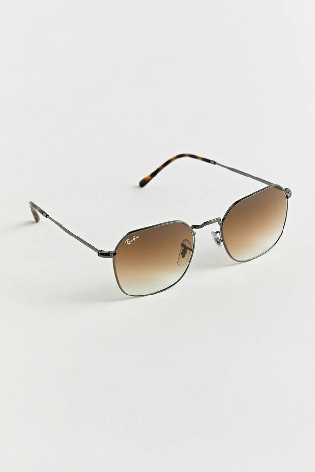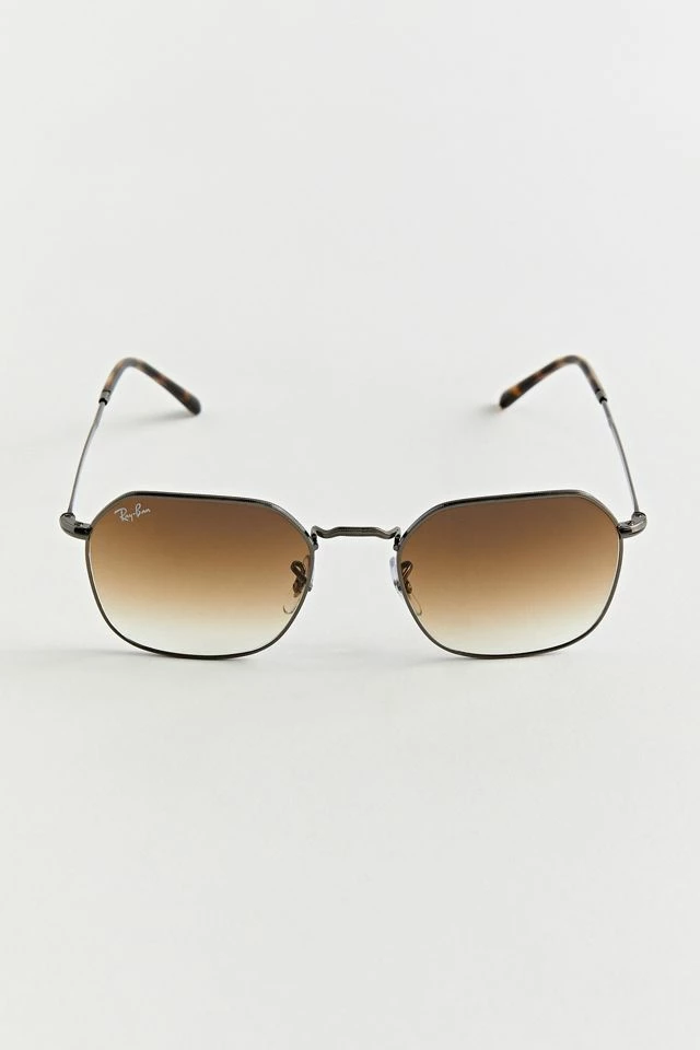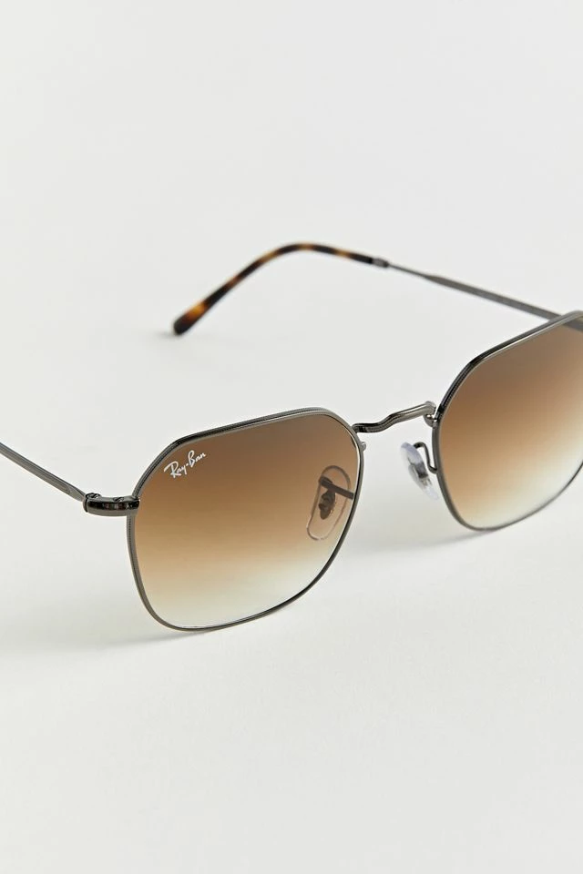 Metal frame sunglasses by Ray-Ban. Features a squared silhouette with a padded nose bridge. Fitted with tinted lenses.