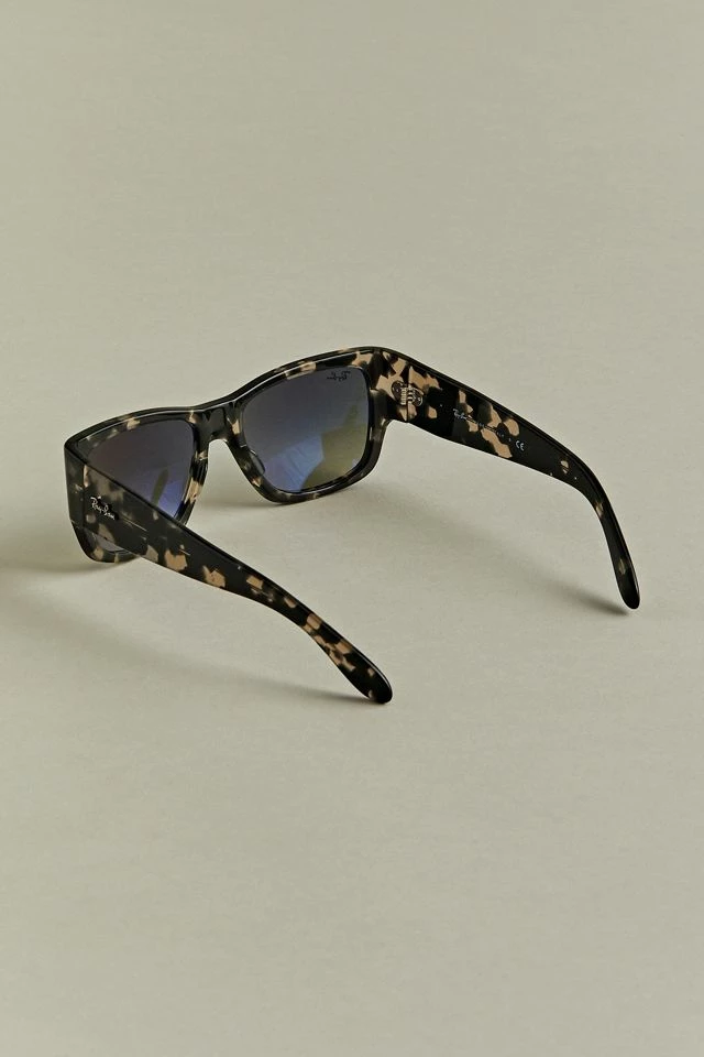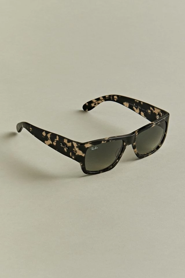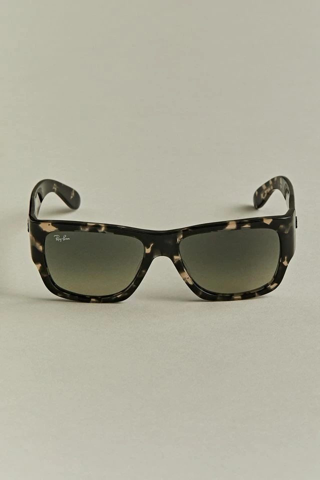 Chunky plastic frame sunglasses by Ray-Ban with a tortoise pattern. Fitted with tinted acetate lenses.