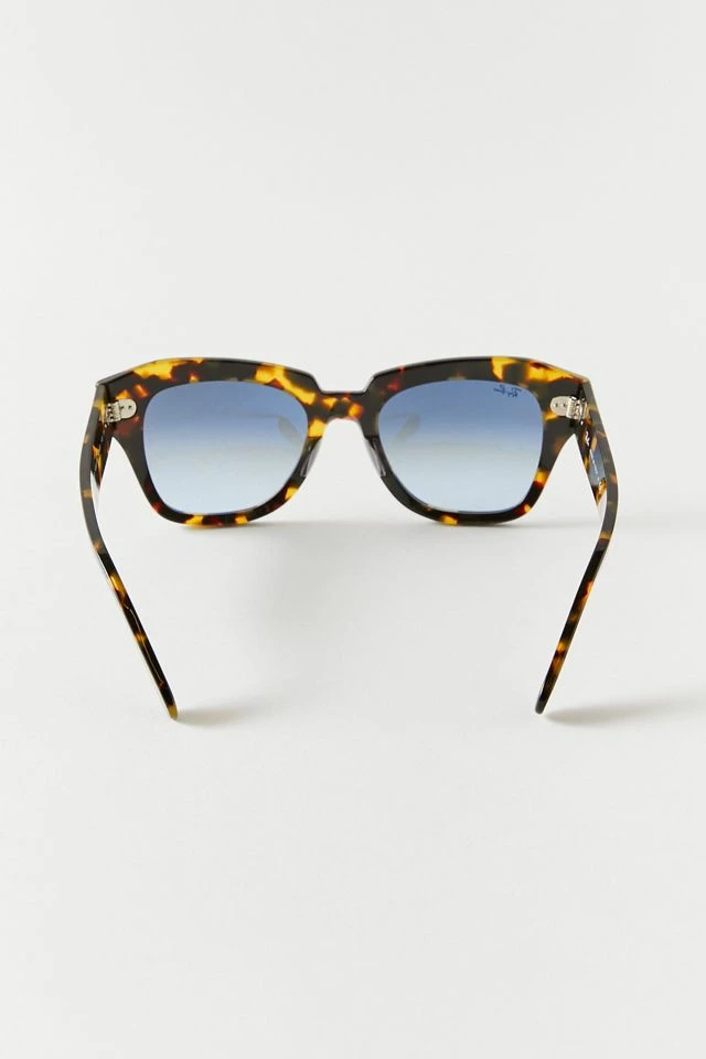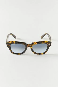 The Wayfarer family continues with the State Street Fleck from Ray-Ban. Its elegant, squared shape features a speckled Havana frame crafted from acetate, with color-tint gradient lenses. Comes with a cleaning cloth and case.