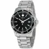 Silver-tone stainless steel case with a silver-tone stainless steel bracelet. Fixed blue ion-finish stainless steel bezel. Blue dial with silver-tone hands and Arabic numeral and index hour markers