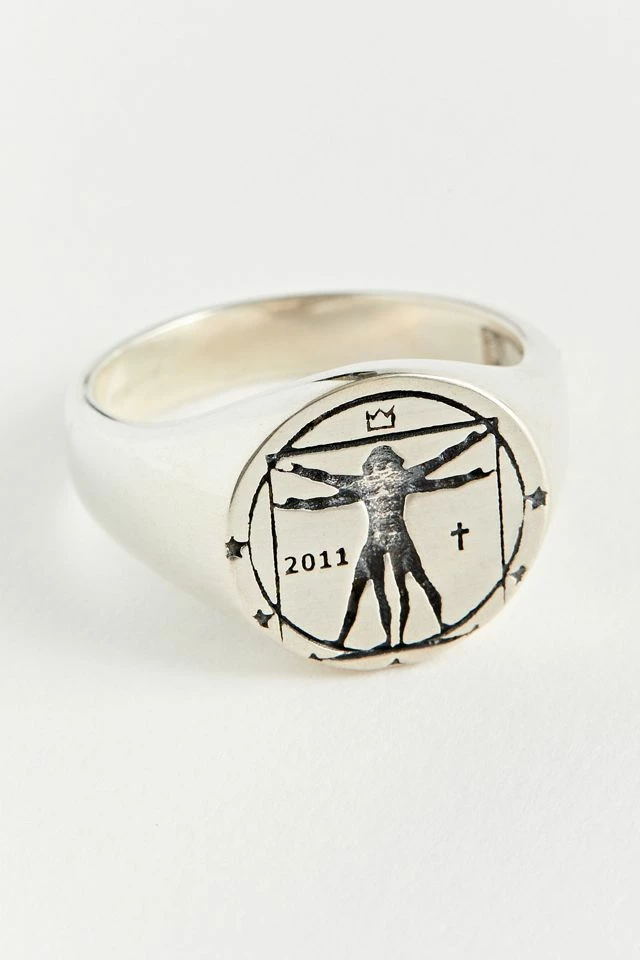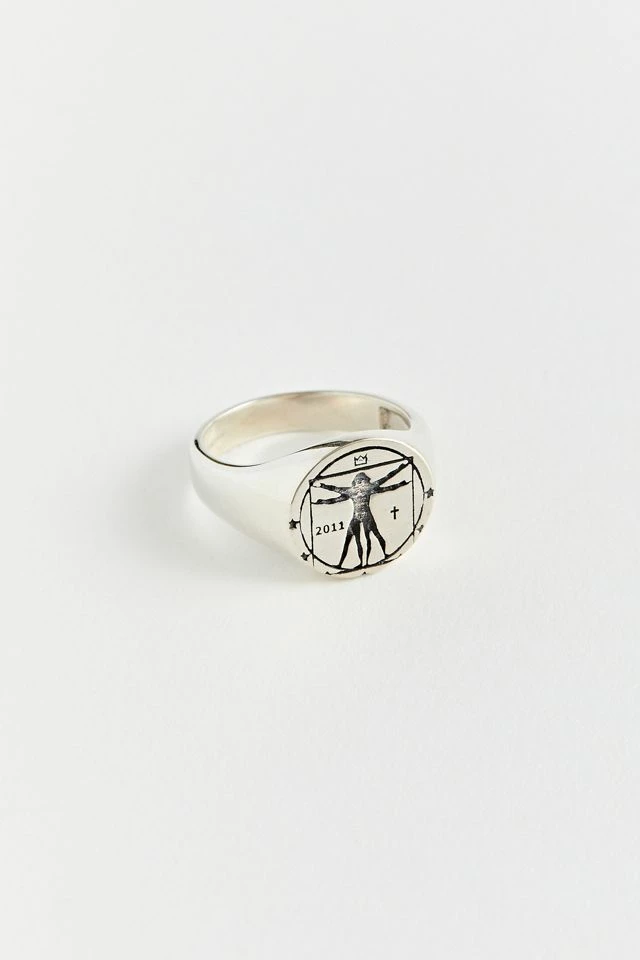 Iconic symbol ring by Serge DeNimes. Crafted from 925 sterling silver with an oxidized finish.