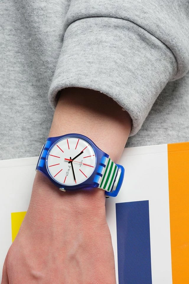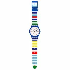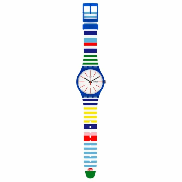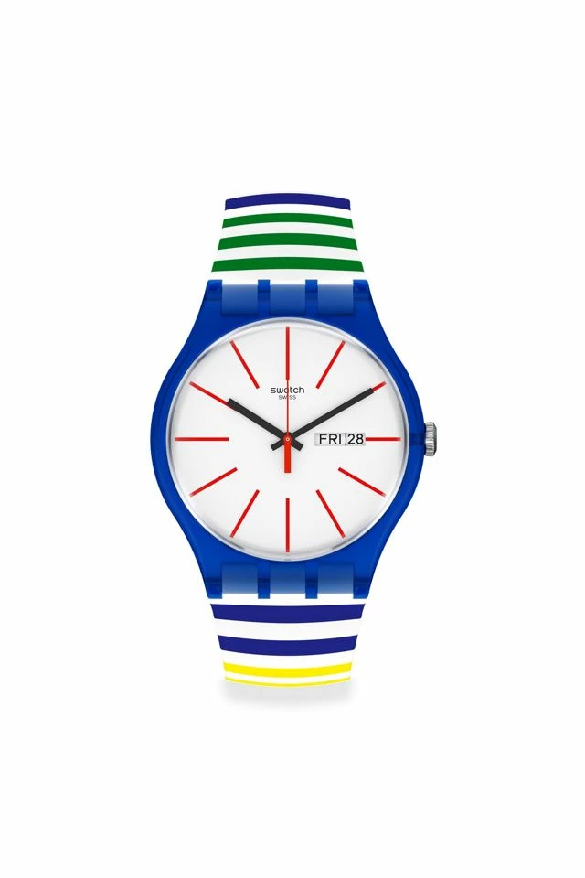 Lush green lawns, bright blue skies and the yellow summer sun inspire HOME STRIPE HOME (SUON715). This watch is full of feel-good colors!