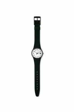 Rock clean and classic throwback vibes with this staple Swatch. The essential black ONCE AGAIN watch keeps you right on time with day and date windows on the mod white dial.