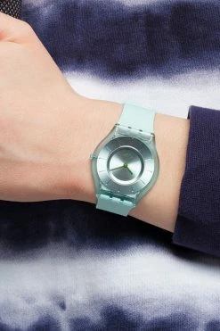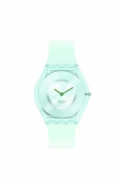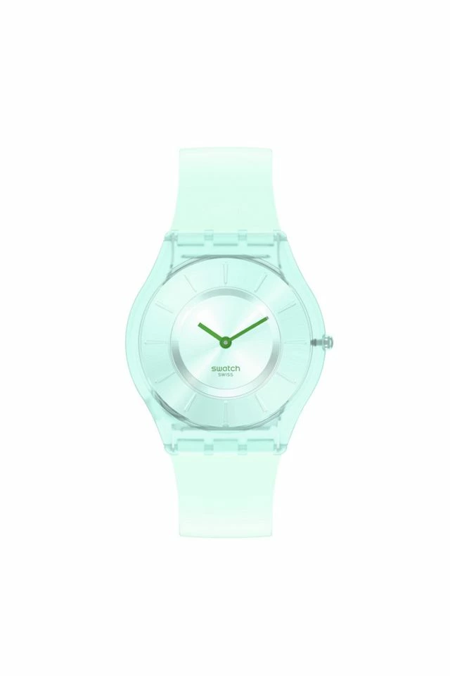 Check out 3.97mm of sophisticated SKIN CLASSIC beauty with a bio-sourced case and strap! The sunbrushed mauve dial boasts vibrant turquoise print.