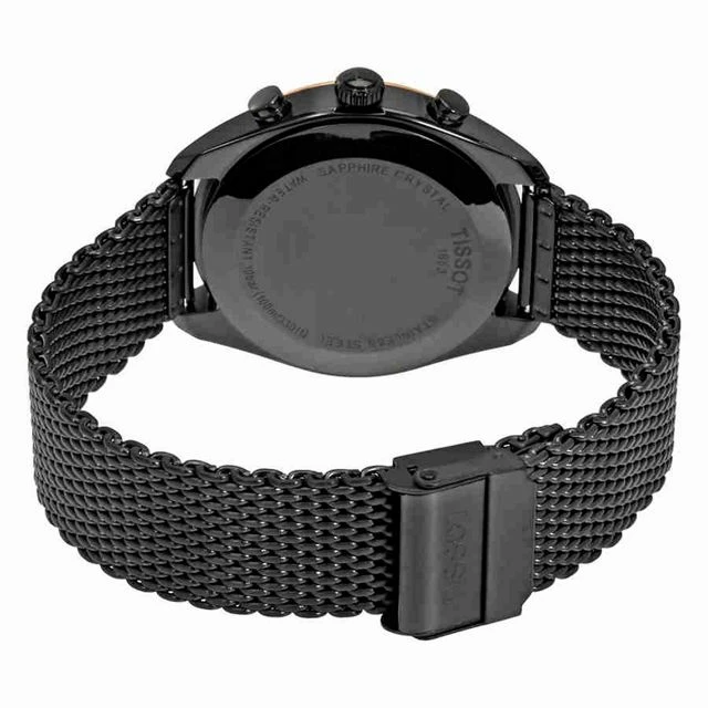 Anthracite dial enhanced by luminous rose gold-tone hands. Black PVD stainless steel case with a black pvd stainless steel mesh band. Quartz movement