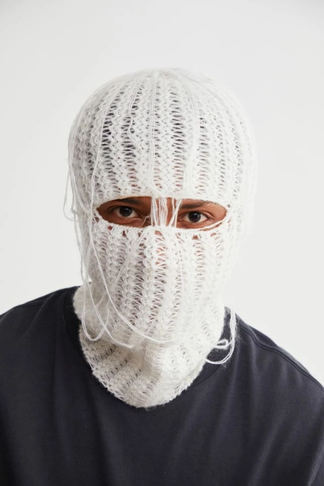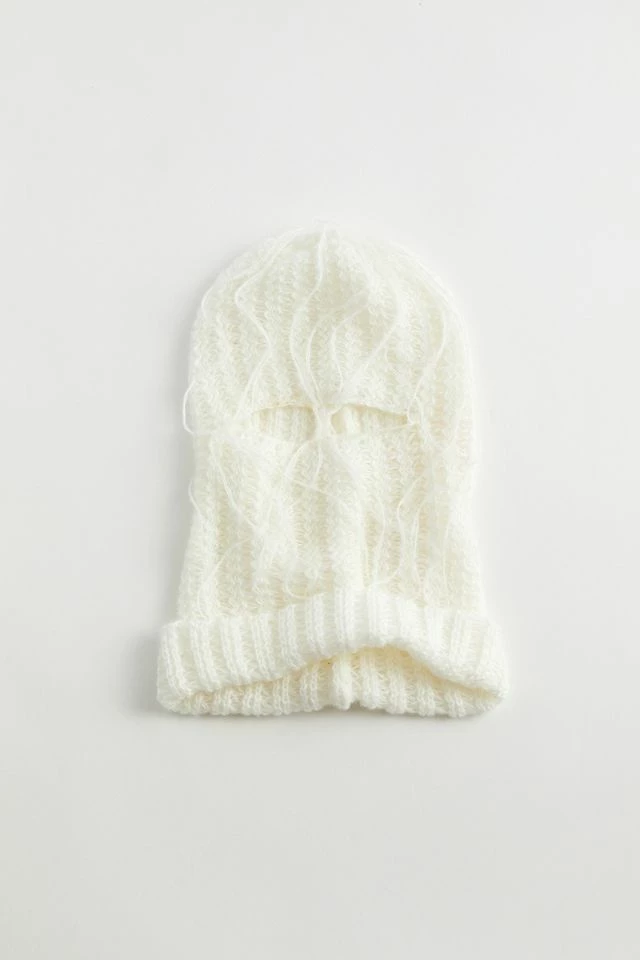 Cotton knit balaclava by Urban Outfitters. Features an undone look with eye hole accents.