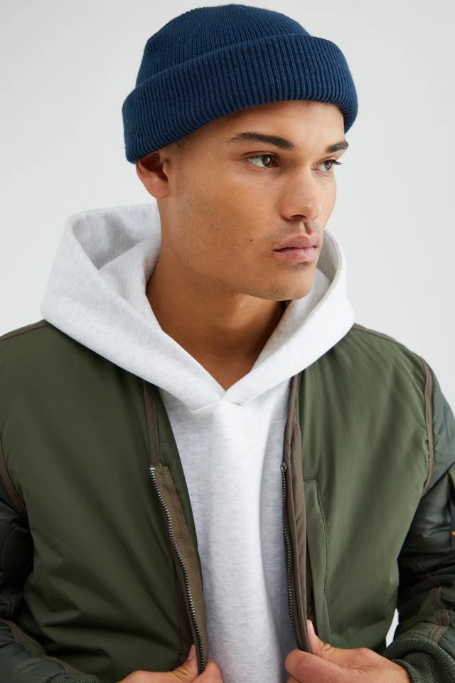 Short roll beanie from Urban Outfitters, crafted in a circular knit from an acrylic fabrication. Finished with an adjustable roll top for a customizable wear.