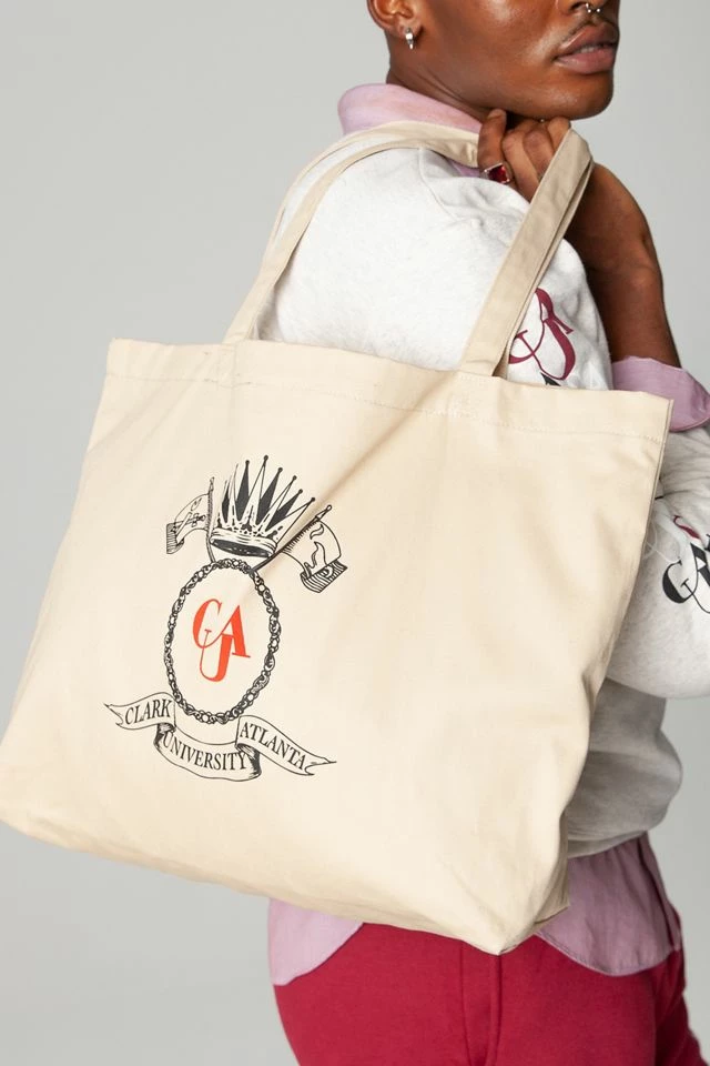 Clark Atlanta University tote bag from our special-edition UO Summer Class of 2021 HBCU Capsule Collection. The UO Summer Class of 2021 was a 10-week design internship for five students recognized for their academic and creative excellence, in collaboration with three Historically Black Colleges and Universities (HBCUs). From concept to creation, the students designed an exclusive UO capsule collection celebrating the culture and community of their schools. The proceeds from each piece the students created will be donated to their respective schools. Designed by Jalen Bradford with an exclusive crest graphic by artist Christian Alexander, this classic cotton tote bag was inspired by the royal nature of HBCUs.