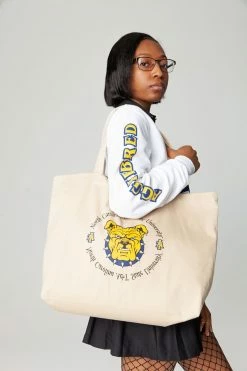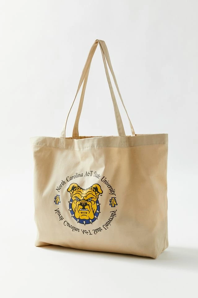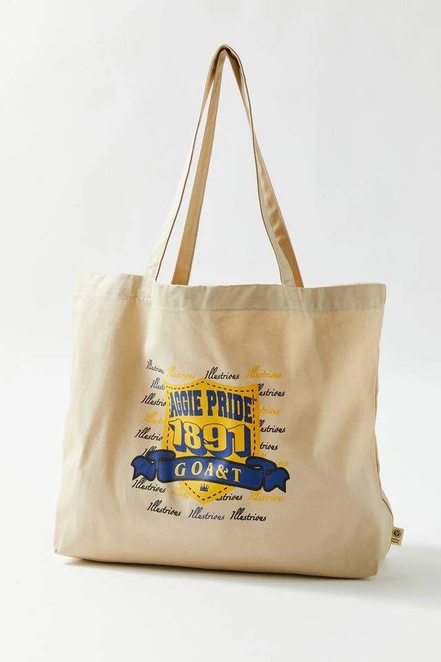 North Carolina A&T State University tote bag from our special-edition UO Summer Class of 2021 HBCU Capsule Collection. The UO Summer Class of 2021 was a 10-week design internship for five students recognized for their academic and creative excellence, in collaboration with three Historically Black Colleges and Universities (HBCUs). From concept to creation, the students designed an exclusive UO capsule collection celebrating the culture and community of their schools. The proceeds from each piece the students created will be donated to their respective schools. Designed by U’lia Hargrove, this classic cotton tote bag represents N.C. A&T with the Aggies mascot and founding date.